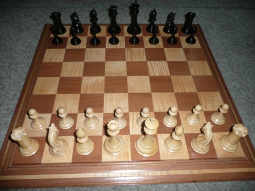 Chess Pieces: A beautiful 4" genuine Ebony & Boxwood Staunton set. It's heavily