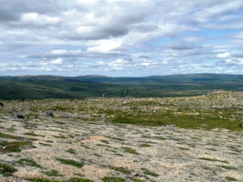 Yesterday we took the Northern Alaska Tour Company’s Arctic Circle Drive Adventure tour. The company’s shuttle picked us up at the campground along with Otto and Penny from Edmonton, Alberta at 5:45 AM. There were a total of 13 on the bus for the tour, including a lovely couple from New Zealand and a family of three from San Jose, California. We became more acquainted with them throughout the day, especially their 3 year old son, Ballu. Ian, our tour guide, has lived in Alaska for ten years and currently lives in the back country. He was a very interesting and informative person. Along the Dalton Highway (or Haul Road as it was first known), we stopped in Joy, Alaska to visit the facilities (outhouses) and shop in the general store if interested. Next we stopped at the trans-Alaska pipeline and learned some interesting information including why there are so many curves in the pipeline, what it’s both above and below ground, and that it puts off just enough heat that caribou can be seen lined up underneath it in the winter. We had lunch and dinner at the Yukon River Camp, the only place between Fairbanks and the Arctic Circle with running water, Finger Mt and finally, we crossed the Arctic Circle! The weather improved throughout the day, so it was sunny and low 60’s when we arrived about 3:30 PM. On the return trip we had the opportunity to walk across tundra, which is very spongy, feel permafrost that was about 15 inches below the surface and touch the trans-Alaska pipeline. We saw a rock face that actually resulted from an earthquake, walked in a field of fireweed, received certificates for surviving an adventurous journey through the northern wilderness, and returned to the campground at 12:30 AM Tuesday. And never once did we see darkness! What a great trip!