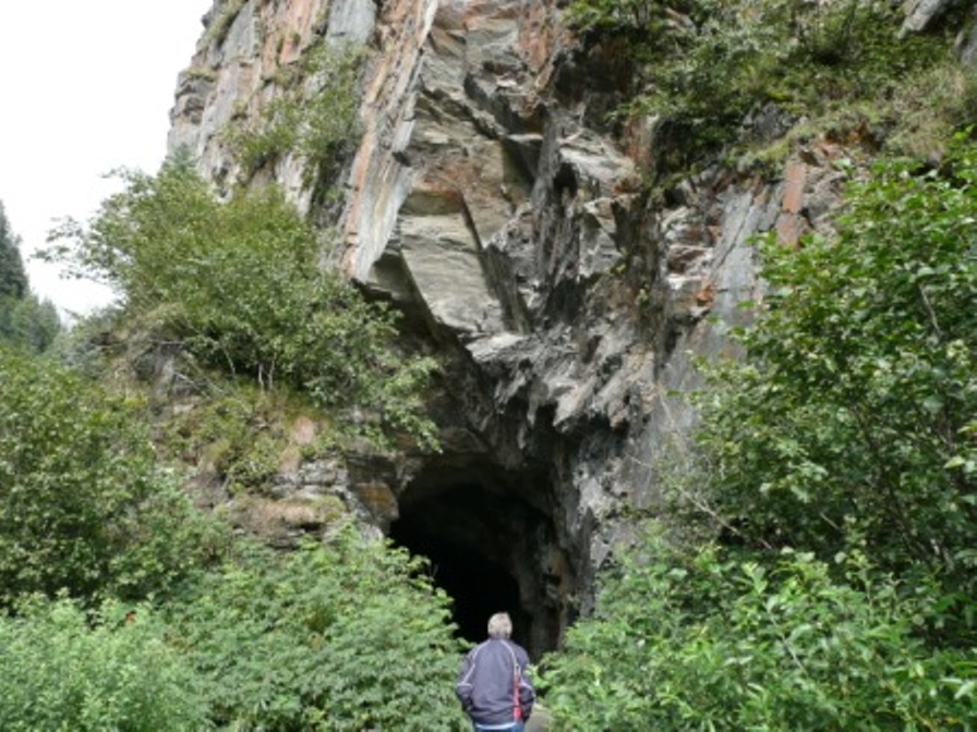 Leaving Tok, we headed east along the Alaska Highway to the Cassiar Highway, Route 37 southbound through British Columbia. The first day of the drive was intense for Bob as the highway was narrow with no shoulders, no center line, and often no guardrail, as well as gravel with frequent construction areas. We stopped at Jade City and the Cassiar Mt Jade Store. It was interesting to see how they cut and polished the Jade. After the first day, the road improved dramatically and the drive was very pretty. We had a close encounter with a grizzly bear and saw several Black bear as we headed for Stewart, BC and Hyder, AK, small sister cities on the Canada-Alaska border. We spent a day driving to Salmon Glacier 25 miles north of Hyder on a narrow, sometimes single-lane, very rutted and cratered dirt road. But the view was well worth it! The Salmon Glacier is the fifth largest glacier in North America. Looking down upon the Salmon Gacier and along the valey below you can see how the glacier is continually transforming the landscape and itself. it is the only glacier in the world where you can look down on it from the road, which we did while enjoying our picnic lunch. On our way back down the mountain, we stopped at the Fish Creek Wildlife Viewing Area where we watched salmon in the very clear creek. We also watched a beautiful bald eagle feeding on salmon on the shore but didn't see any bear fishing.