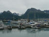 We took a day trip to Whittier, about a 2-hour drive south of Anchorage along the Seward Highway. The drive along the Turnagain Arm of the Cook Inlet is quite pretty even though it was cool and overcast. We stopped at the Begich Boggs Visitor Center on Portage Lake where we saw the Bear, Burns and Byron Glaciers. We also saw a couple of icebergs in the lake, one which actually floated to shore before we left. We drove through the Anton Anderson Memorial Tunnel, the longest combined vehicle-railroad tunnel in North America. It connects the port city of Whittier on Prince William Sound to the Seward Highway and South-central Alaska and opened to vehicle traffic on June 7, 2000 after extensive conversion from a World War II railroad tunnel. The tunnel is 1-lane and allows a 15-minute traffic flow each direction, unless a train is entering, then all traffic stops for the train, and then waits for the purging smoke from the tunnel after the train exits. It was quite interesting driving through a rock tunnel, on railroad tracks, and exiting on the Whittier side where there was drizzle and a definite temperature drop. We had lunch at Swiftwater Seafood Café on Prince William Sound, were we ran into Malcolm & Trish, a couple from Toronto, Ontario we’d met at the Ft. Nelson Campground a few weeks earlier. We shared a table and visited during lunch; afterward we wandered along the waterfront before making our journey back to Anchorage. The climax of the day was a bald eagle sighting.
