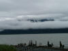 We decided to spend a couple of days dry camping on Resurrection Bay in Seward at the municipal campground. We were able to back within 100 ft of the bay, right along the Iditarod Trail and watch the otters play, the boats and ships enter and exit the harbor and just enjoy the beautiful mountain view. It was interesting to see the tide go in and out since we had never spent much time in a high tide area. Thursday morning as we prepared to leave it was quite foggy and we could barely see boats in the bay, but 90 minutes later, as you can see in the pictures, the fog lifted and we had an absolutely gorgeous view of the mountains poking through the clouds. It was also the first day in a week it wasn’t raining!