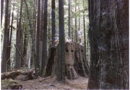 Bob, Mike & Eric collected redwood walking sticks in the forest. Camped at Hidden Springs of Humboldt State Park. Beautiful spot among the redwoods.
