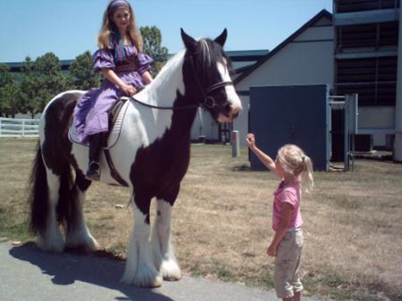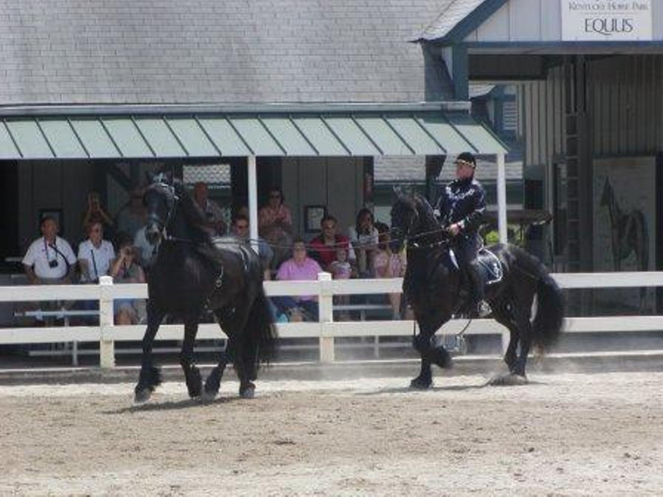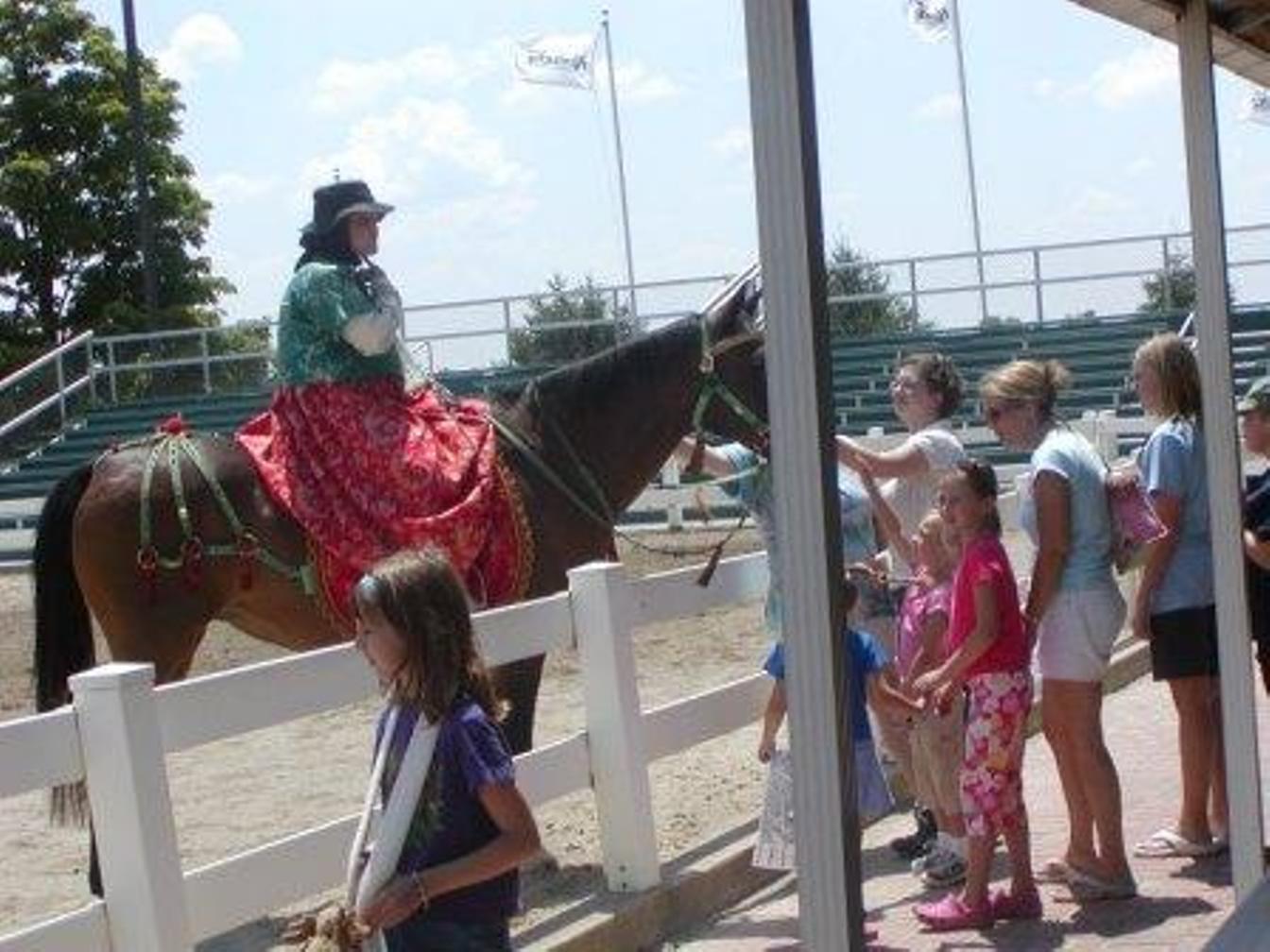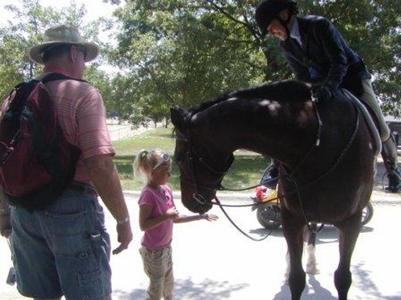 Thursday June 14 We took the shuttle to the Kentucky Horse Park. Shelby is VERY excited! We saw draft horses then Shelby & Grandma rode horses, Shelby on Sequoia and Grandma on Alcazar. We ate lunch at the cafe, saw some competitive events, saw the Mare & Foal show, Parade of Breeds, Home of Champions and Draft Horse exodus. Shelby had a wonderful day! We took the shuttle back to the campground where Shelby enjoyed the pool. We had a campfire and roasted hot dogs and marshmallows. Grandpa & Grandma walked around the campground while Shelby galloped around on her imaginary horse. She fell into bed at 11:00 PM a very tired but happy girl!
