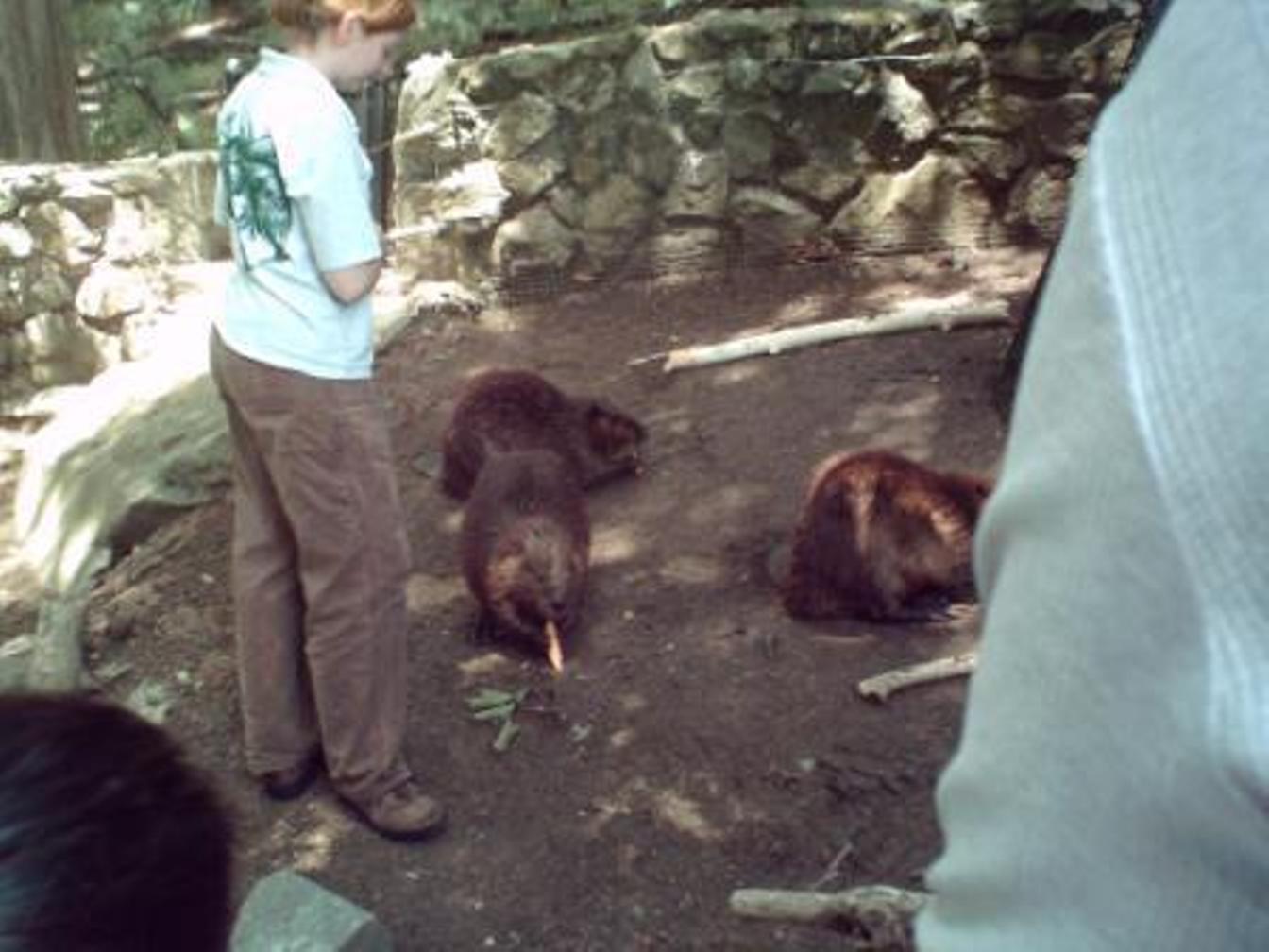 Thursday June 7 Today is Shelby's day at the National Zoo. We saw the Panda Cub and it's mother, cheetah, lions, tigers, orangutans, beavers being fed, and very active gorillas in the Great Ape House. The gorillas were very entertaining and we sat for several minutes watching the antics of the adults and the children! We had lunch at the Mane Cafe and got Mike a National Zoo police patch. We returned to the campground around 5:00 PM and swam in the pool, which was much more crowded today.