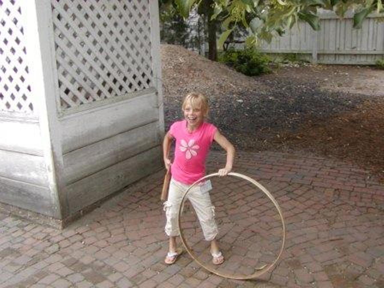 Sunday June 10 We arrived in Colonial Williamsburg late morning. We watched an introductory film, then walked through the center of town, visiting the shoemaker, the Geddy House and seeing several reenactments. Shelby played a colonial game and learned her courtesies. We had lunch at the Cheese Shop and participated in the parade from the courthouse to Raleigh's Tavern to hear General Washington. We returned to the campground in the early evening and swam in the pool. Shelby is getting quite tan and blonde.