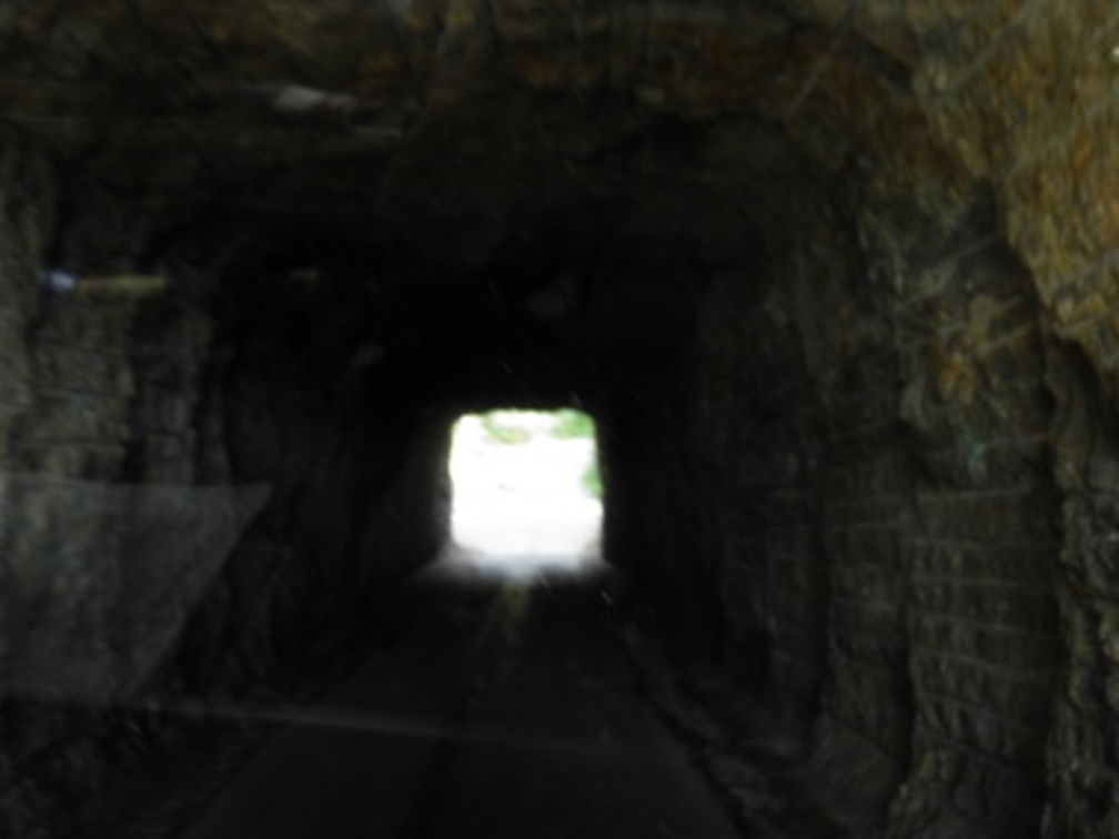 the Iron Mountain Rd passes through three low narrow tunnels, one with a