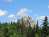 We have wandered thru the Black Hills several times, but never did we take a bus tour. So, we decided to take the Ft Hays tour. Glad we did. We saw some things that we hadn't seen before and learned more about this area. The tour included a good breakfast of sausage and pancakes as well as a Chuck Wagon dinner and a Western music show! Great fun! One highlight of the trip was taking the bus thru the Needles Highway tunnels. The Bus is 8' wide and 10' tall. The tunnels are both 8'4" wide and 10'6" high. This leaves a clearance of 2 inches on either side of the bus! On the far side of the 2nd tunnel there were people lined up to see the bus come thru. Ken, the driver, thought it would be great fun to pretend to be stuck about 3/4 of the way thru the tunnel! So he stopped the bus, blinked the lights, turned the wheels left and right and revved up the engine! You could see the people taking pictures and pointing at the bus. He then very slowly drove thru the rest of the tunnel, stopped and to the great delight of the crowd asked for directions to Mt Rushmore! Everyone had a good laugh!