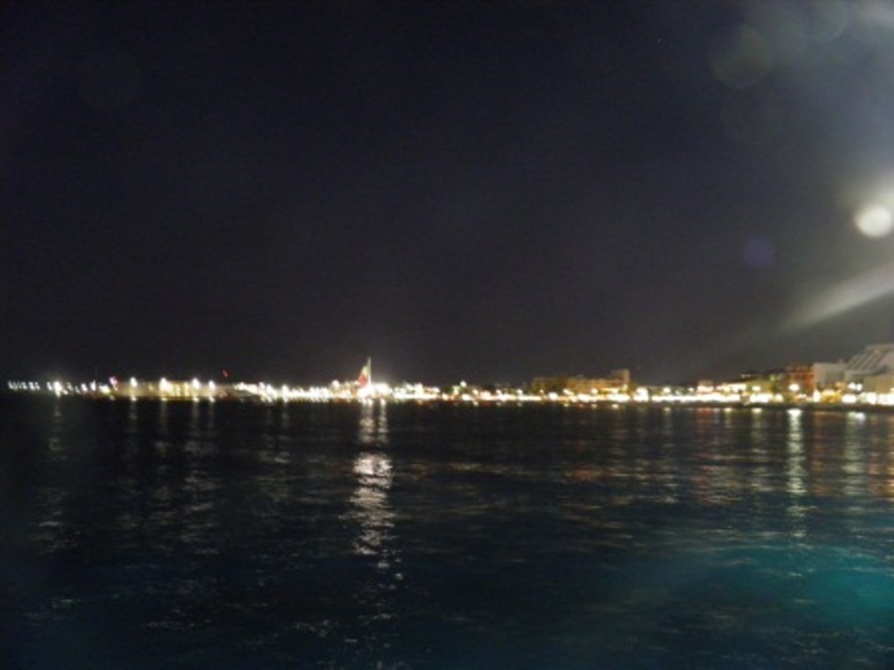 dessert at our table on the deck, we saw a dolphin frolicking in the gulf; what
